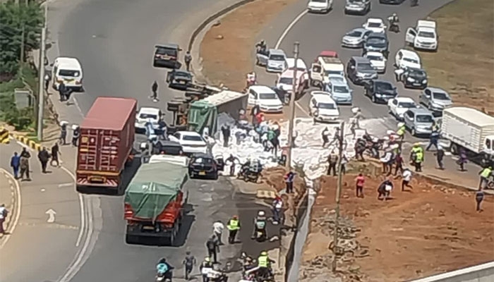 Mitandao ya kijamii nchini Kenya imegubikwa na tukio la watu kusomba vifuko vya unga wa mahindi , baada ya lori lililokua limebeba bidhaa hizo kupata ajali ya kupinduka katika barabara kuu ya jijini Nairobi.