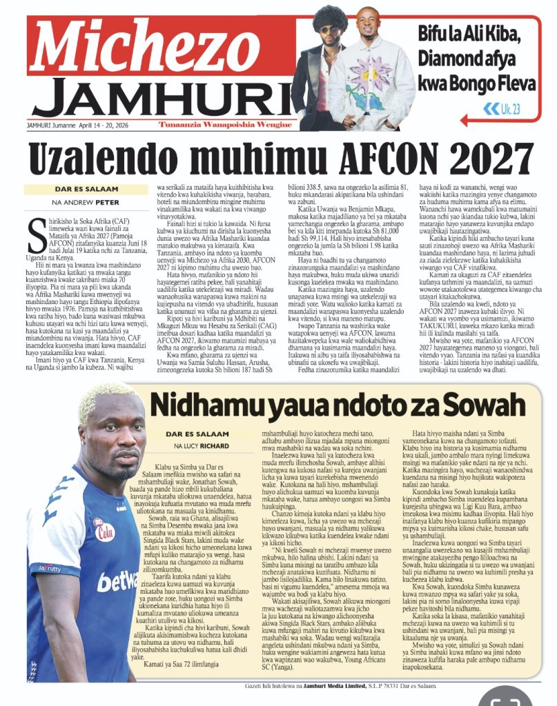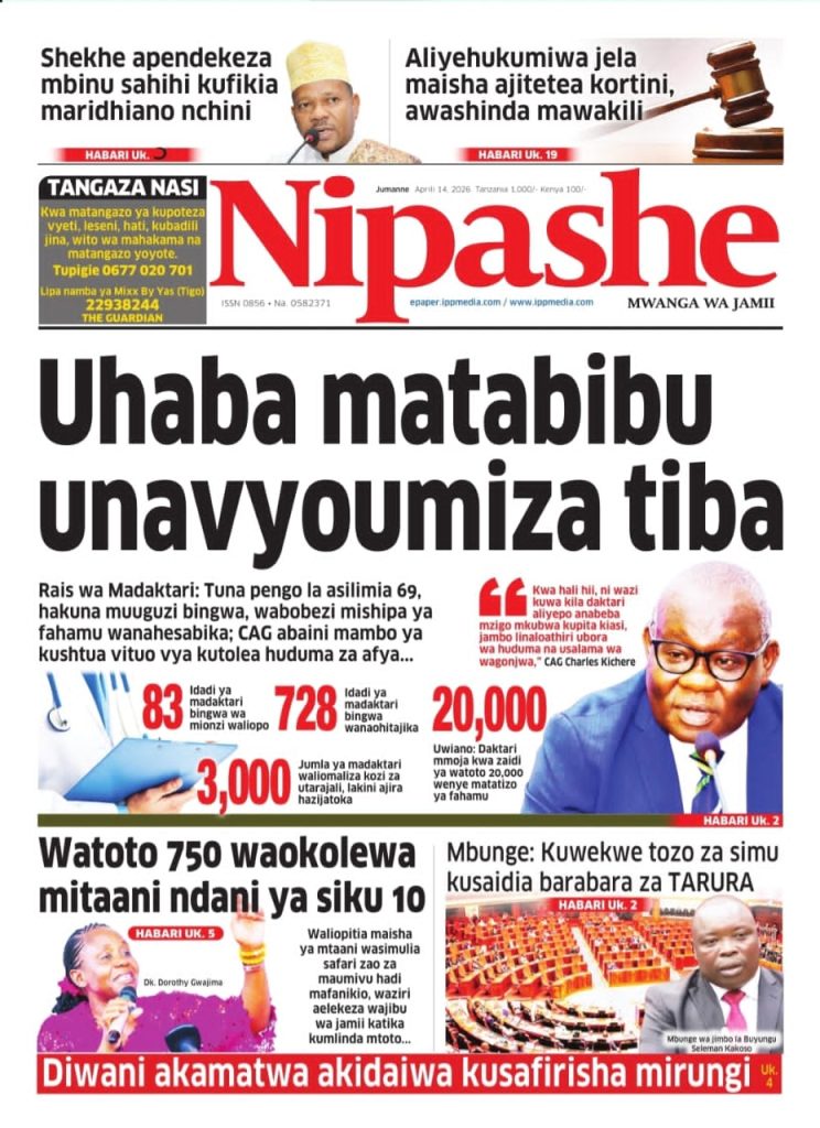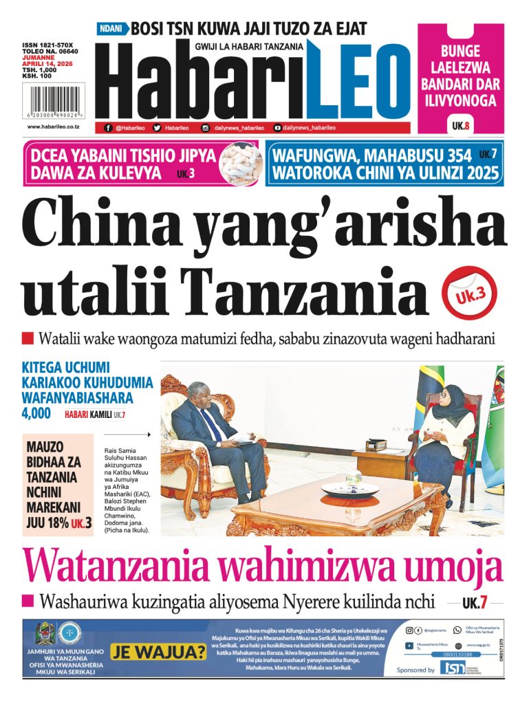 MAGAZETI YA LEO JUMANNE APRILI 14,2026